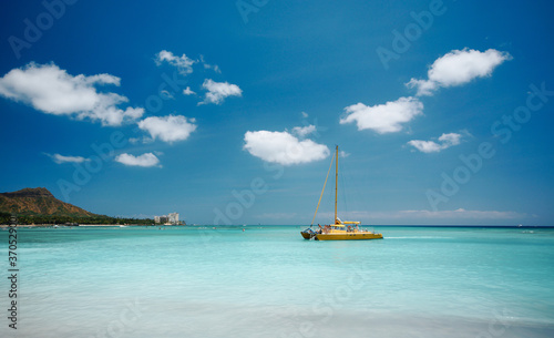 © mapo, Obraz premium ハワイ・ワイキキビーチと観光船