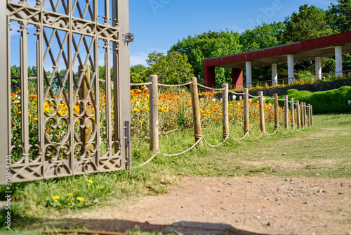 © satoru, Fototapeta premium 大阪・服部緑地の円形花壇と展望デッキ