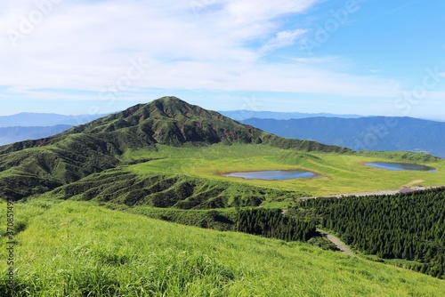 Fototapeta premium 阿蘇 烏帽子岳と草千里の風景