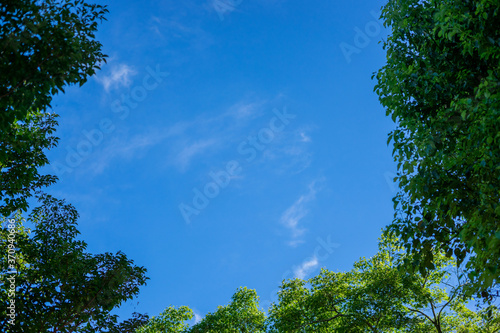 © yoshikaz, Obraz premium 紅葉と楠木と青い空