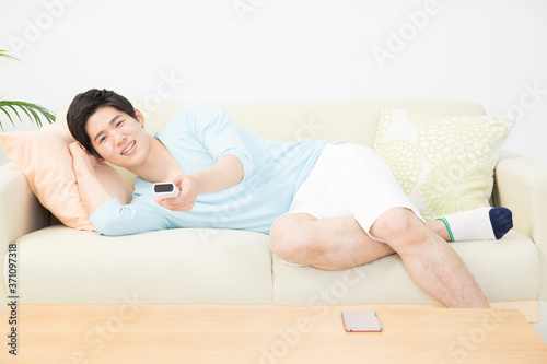 Fototapeta premium テレビを見る男性