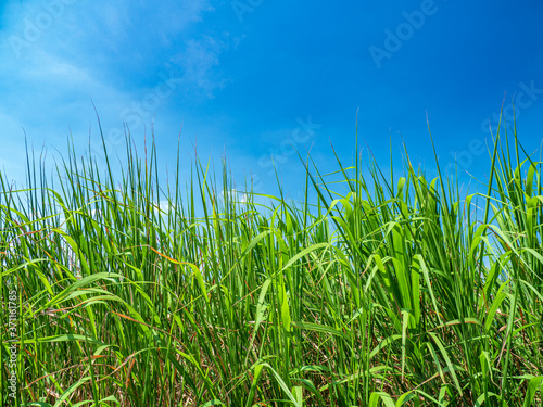 Obraz premium 夏の青空と野原。8月。