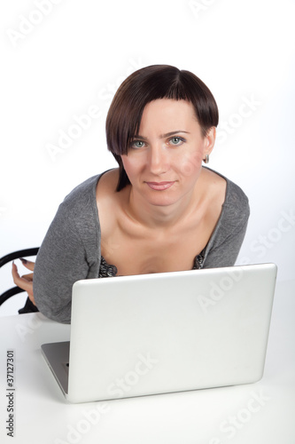 © mvi690, Naklejka premium Портрет девушки за компьютером.