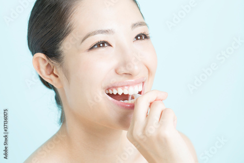 Obraz premium 歯間ブラシをする女性