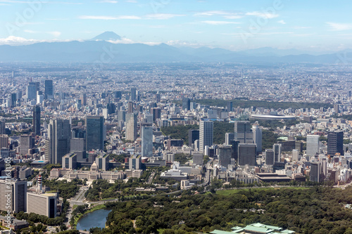 Obraz premium 国会議事堂上空から富士山方向を空撮