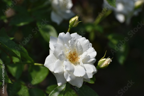 Fototapeta premium 夏の庭園で咲く白色のバラの花 アイスバーグ