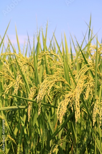 Naklejka premium 青空と稲穂