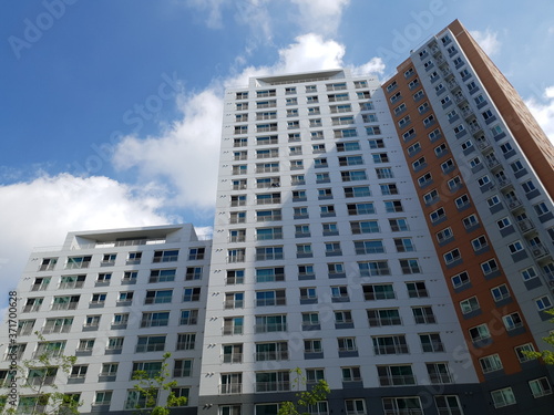 © 재봉 황, Naklejka premium 파란 하늘과 아파트