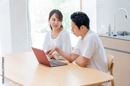 © ponta1414, Obraz premium 若い 考えるアジア人夫婦