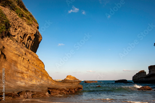 © machikophoto101, Naklejka premium 種子島の景勝地、朝日に照らされる美しい熊野海岸の奇岩