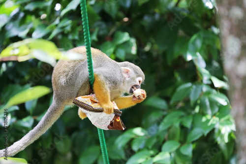 Obraz premium 人のおやつを食べるリスザル