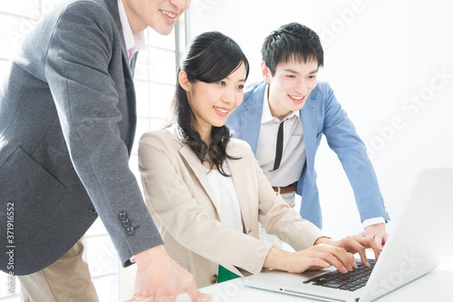 Fototapeta premium 打ち合わせするビジネスマンとOL