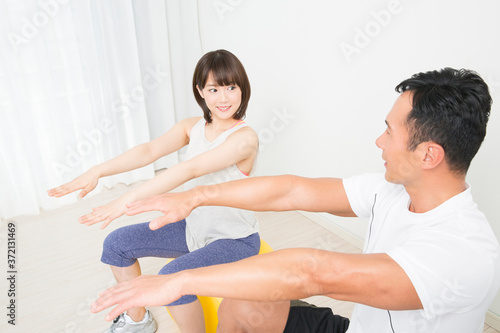 © Paylessimages, Obraz premium バランスボールでトレーニングする男女