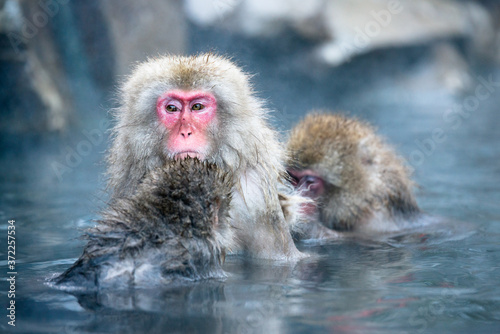 © Sou, Naklejka premium 温泉に浸かるニホンザル 冬の地獄谷の猿