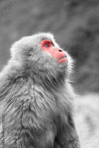 Naklejka premium ニホンザルの自由で楽しい暮らしのポートレート 猿のかわいい姿