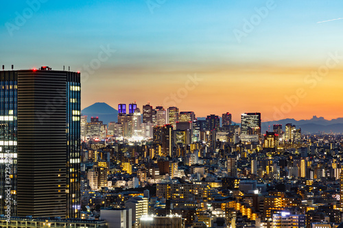 © taka, Naklejka premium 夕暮れの光が綺麗な高層ビル群と空