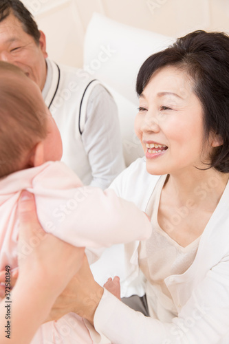 Obraz premium 孫と遊ぶ祖父母