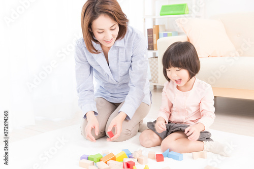 Fototapeta premium 積み木で遊ぶ母と娘