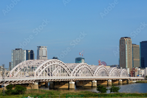 © Loco, Naklejka premium 十三大橋と大阪キタの街並み