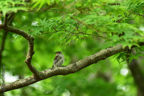 © mayudama, Fototapeta premium 夏の森のコサメビタキ
