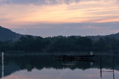 © sigmaphoto, Obraz premium 朝焼けの空と小舟