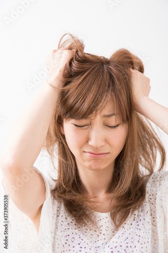 Naklejka premium 頭を抱える女性