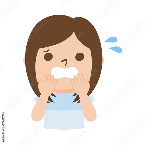 Obraz premium パニックになってる若い女性のイラスト。