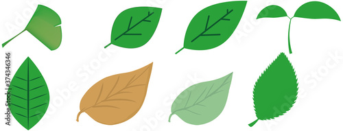 © foolchico, Fototapeta premium 枯れ葉・緑の葉っぱやイチョウの葉のベクターイラストセット