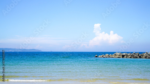 © 4ChaN, Fototapeta premium 夏の青空と青い海と防波堤