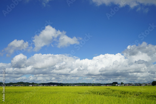 © tomo, Obraz premium 青空と白い雲と稲穂