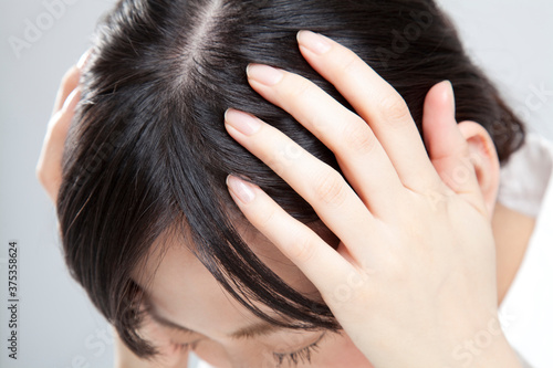 Naklejka premium 頭を抱える女性