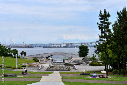 Fototapeta premium 横浜港臨港パークに架かる石橋