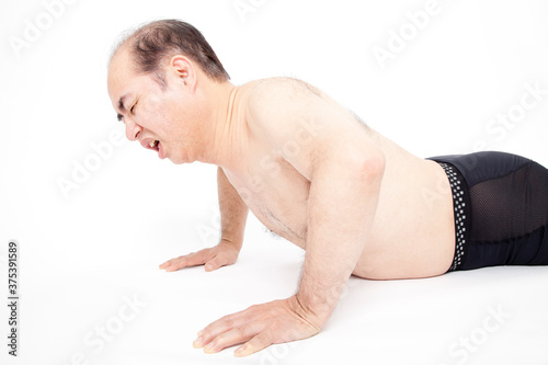Obraz premium 腕立て伏せをするメタボ男性