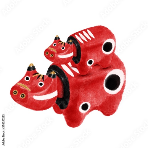 © newmin, Fototapeta premium 赤べこ 水彩風イラスト
