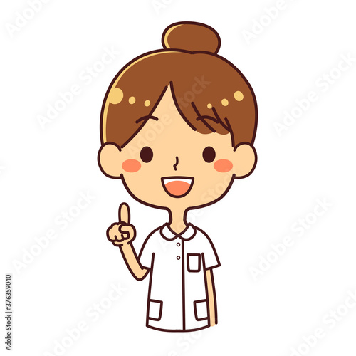 Obraz premium 看護師 若い女性 指差し 上半身