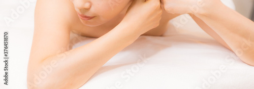 © zheng qiang, Obraz premium 美容室でエステをしている綺麗な裸の若い女性の上半身