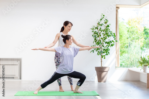 © taka, Fototapeta premium 自宅でヨガレッスンを受ける女性