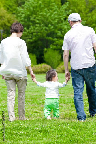 Fototapeta premium 手を繋いで歩く親子
