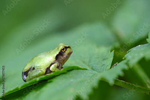 © iguchiyasunori, Obraz premium 葉っぱの上で休むアマガエル