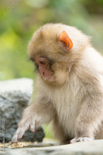 Naklejka premium ニホンザルの自由で楽しい暮らしのポートレート 猿のかわいい姿