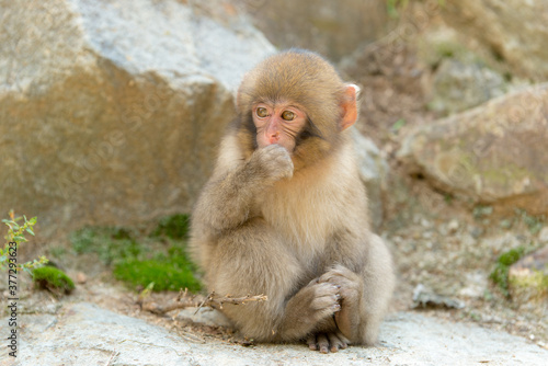 Naklejka premium ニホンザルの自由で楽しい暮らしのポートレート 猿のかわいい姿