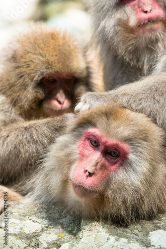 © Sou, Fototapeta premium ニホンザルの毛づくろい 猿のかわいい姿