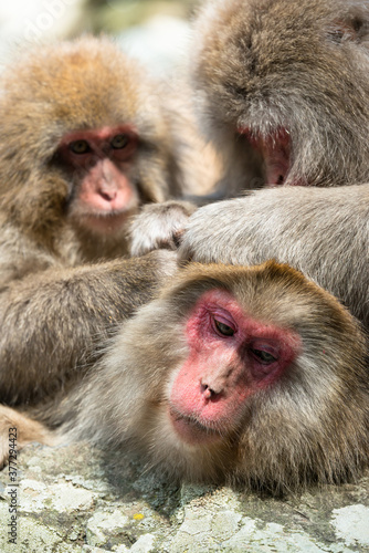 Fototapeta premium ニホンザルの毛づくろい 猿のかわいい姿