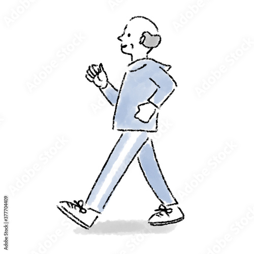 Obraz premium ウォーキング シニア 男性 水彩 手描き
