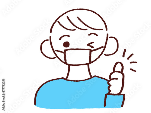 © クリモト, Obraz premium 右手でナイスポーズをするマスク姿の若い男性