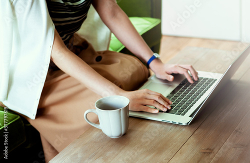 © UTS, Fototapeta premium パソコンを操作するビジネスウーマンの手元