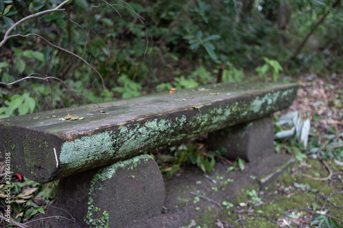 © あゆみ 柴田, Obraz premium 森の中の木のベンチ