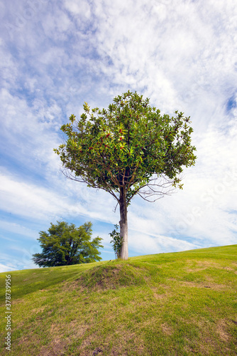 © megustaelbosque2020, Fototapeta premium 晩夏 丘に立つ木