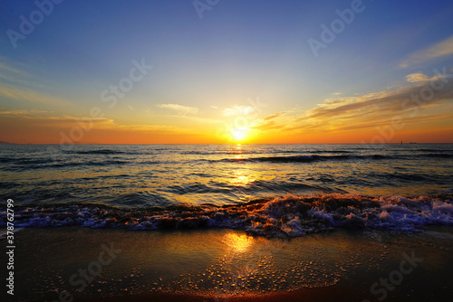 © あゆみ 柴田, Fototapeta premium 美しい海と夕陽と波