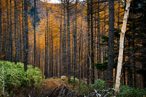 Obraz premium 紅葉する森をハイキング